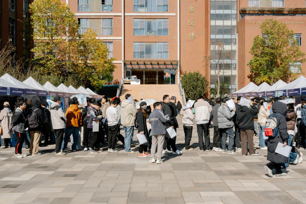为精准对接用人单位招聘需求与昆明理工大学交通工程学院2026届毕业生就业需求,搭建高效、精准的人才供需对接平台,助力企业引才育才,促进毕业生高质量充分就业,11月26日,交通工程学院在交通楼前小广场举办了“才聚交通 职引未来”2026届毕业生秋季双向选择洽谈会。本次双选会通过“线下+线上”结合的模式,打造具有学科特色与行业针对性的就业服务品牌活动,推动就业服务精准落地。