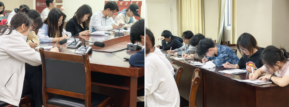 国家安全知识答题环节采用纸质试卷的形式进行。试卷题型丰富,涵盖单项选择、多项选择、判断题和简答题,内容涉及国家安全法律法规、历史事件、防范措施等。同学们拿到试卷后,迅速进入答题状态,时而眉头紧锁、低头沉思,认真推敲每一道题;时而快速书写,将自己掌握的知识工整地填在试卷上。